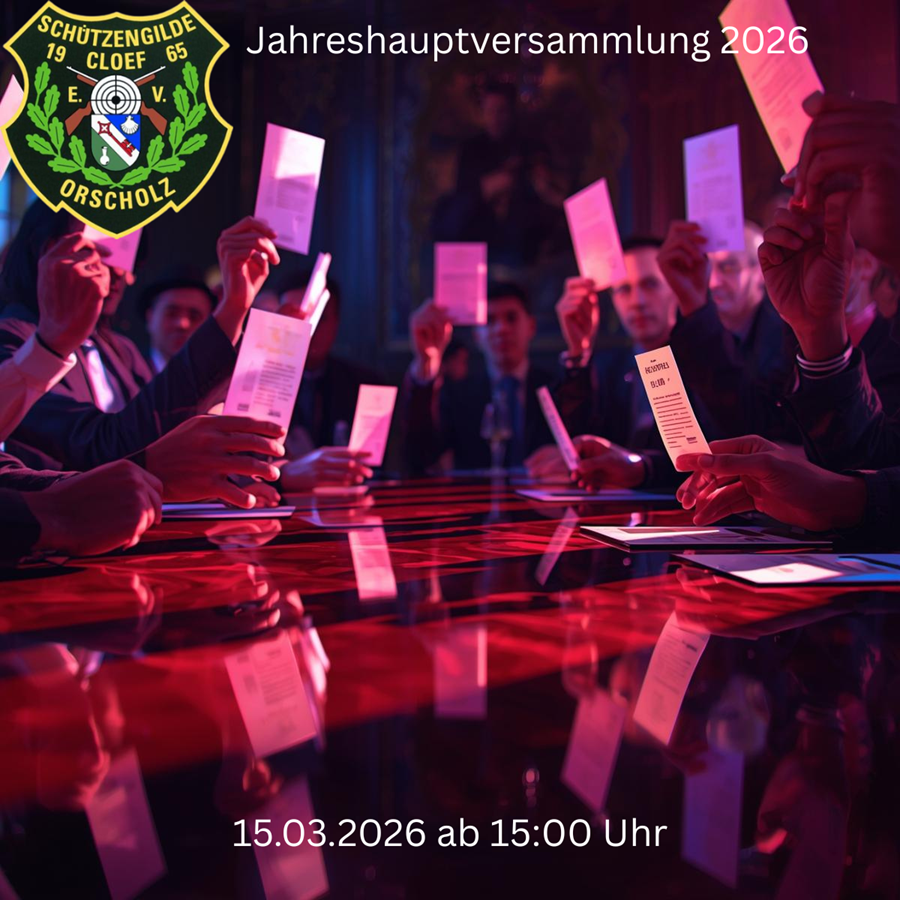 Am 15.03.2026 um 15:00 Uhr findet die diesjährige Jahreshauptversammlung der Schützengilde Cloef 1965 Orscholz e.V. statt.
